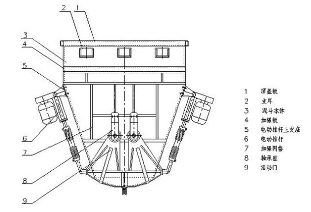 电动泥斗主要部件有储泥斗,活动门、电动推杆和控制箱四大部分组成。